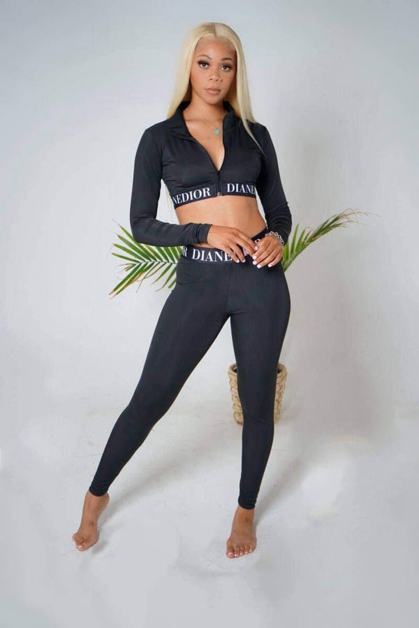2-piece set: Zip-up long-sleeve crop & high-waisted leggings
